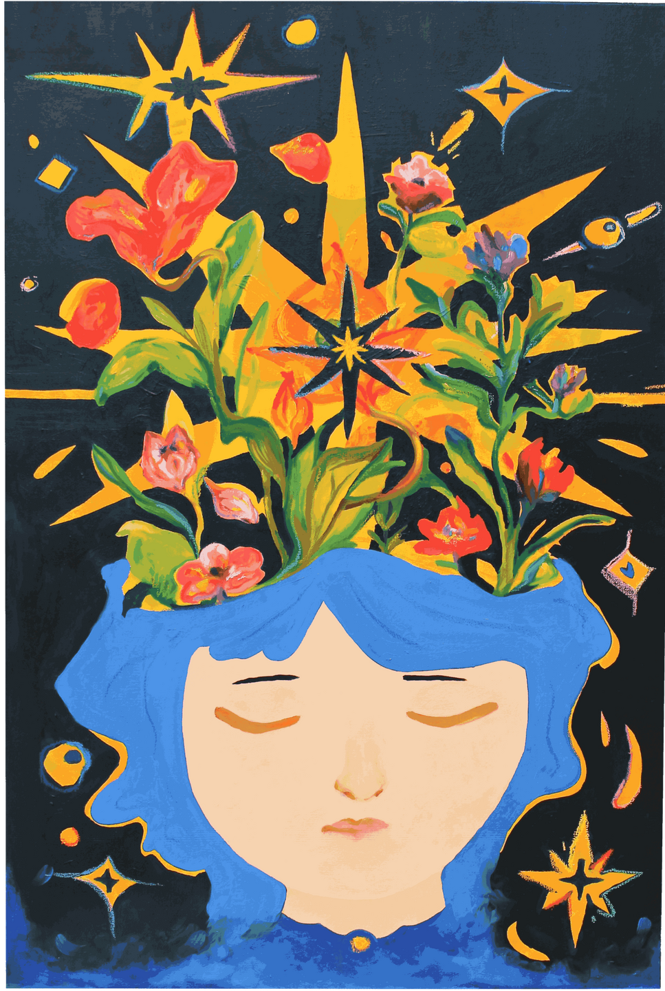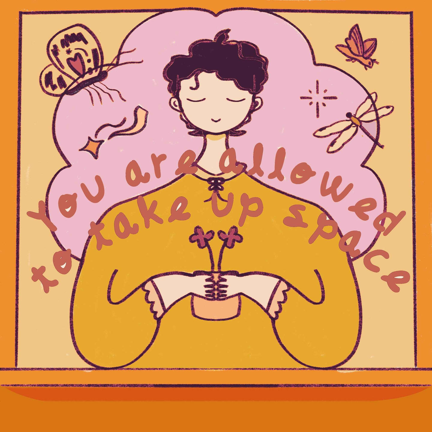 Through art, I create physical pieces of hope, emotions, and life that I wish to express to myself and those who encounter them. I draw inspiration from the love of what makes us human, nature, and life as a disabled person. I start by making messy lines of what I want to understand or want others to hear, done with whatever medium best fits my form of communication. This is often painting or drawing, whether digitally or pieced together by hand. I place colors with intention, follow lines where they take me, and make shapes with whimsy, accepting the art of slow craft that my differences fuel. Why I create lies in my story, thoughts of accessibility, and the natural world that constantly strings together itself and our present. I appreciate the accessibility that art-making is to me as a communicative and life-saving device, as a way to foster connection. Art is ultimately my way of weaving life together to form something whole. It is an act of defiance, a letter to myself and those alike, and above all, a way to keep moving forward.